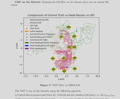 This project was developed as part of ME469: Machine Learning and Artificial Intelligence in Robotics at Northwestern University, under the instruction of Professor Brenna Argall. The implementation uses the MRCLAM dataset from the University of Toronto’s Autonomous Space Robotics Lab.
